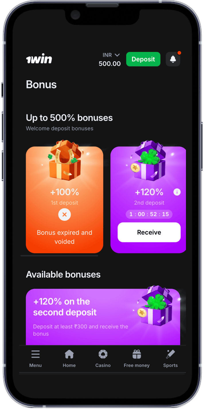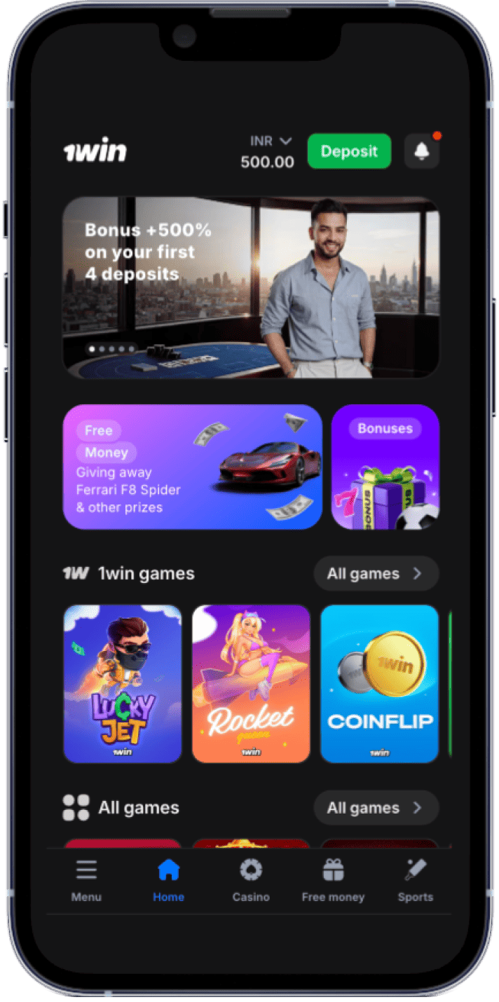 1Win app gives Indian players on-the-go access to the bookmaker site and casino lobby. It works on most average phones and lets you use local wallets to fund your bets. Install 1Win on your device today and play at your convenience.