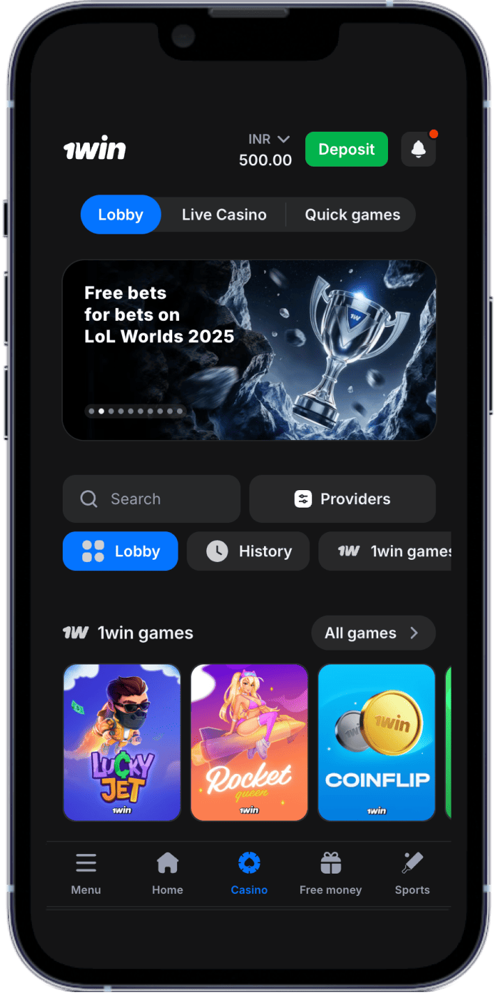 On-the-go gamblers have access to all 11,000 games offered by 1Win. You can play crash games, Indian-focused live tables, and blockbuster slots. Most games support portrait mode for one-handed taps.